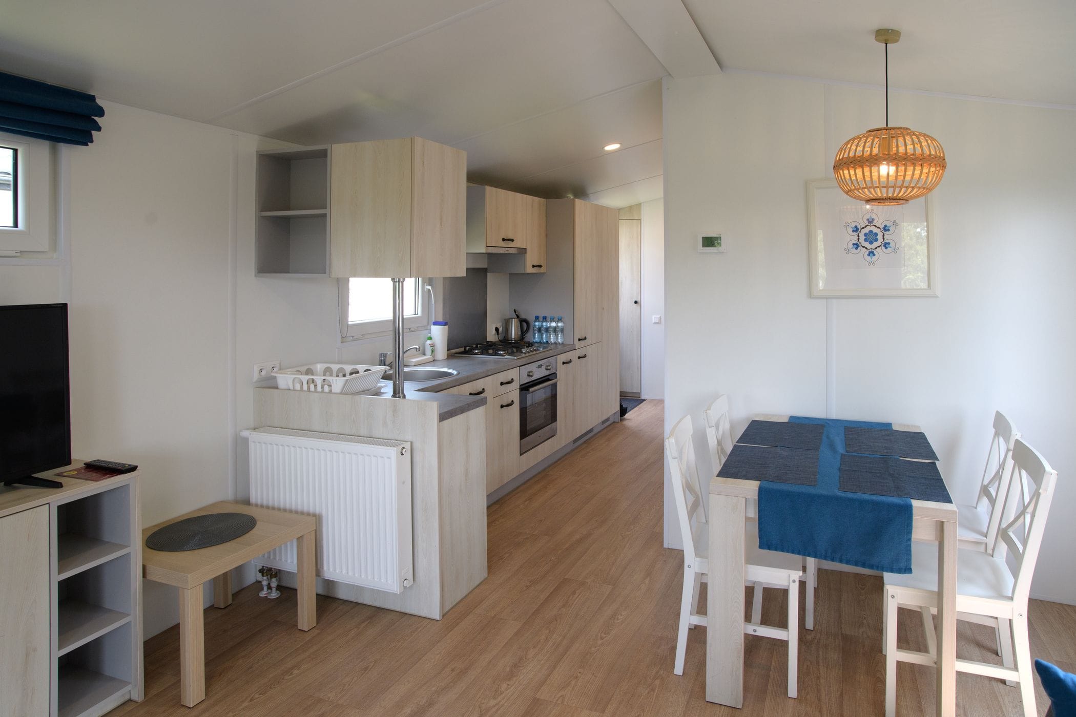 Jednokondygnacyjny z tarasem z widokiem na jezioro z 2 sypialniami, łazienką oraz salonem z aneksem kuchennym, w każdym z domków jest możliwość zakwaterowania maksymalnie 6 osób