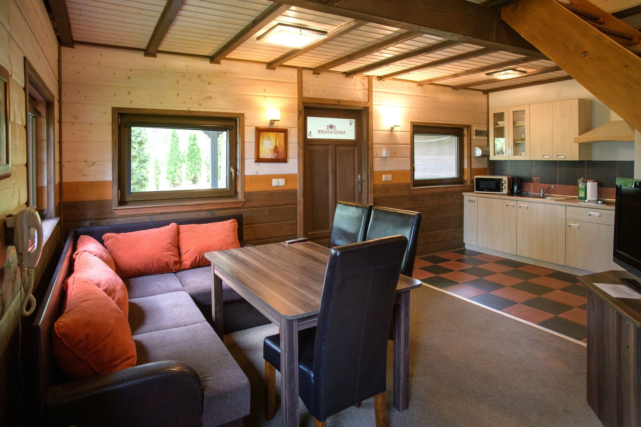 Dwukondygnacyjny z 2 sypialniami na piętrze, salonem z aneksem kuchennym oraz łazienka na parterze, główna sypialna z łóżkiem małżeńskim druga sypialnia łóżkami pojedynczymi. Maksymalna liczba zakwaterowania do 6 osób